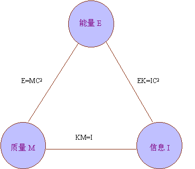 对目前谈及的质量、能量、信息的三足鼎立的关系我们用图2来表示。在图中引入的信息与质量的换算常数则是自然界的又一基本常数(也可能是已知常数的某种函数)。它究竟是多少尚待科学家研究。