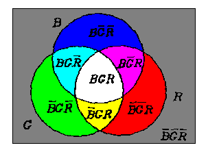 ![]() 图5 Ven氏图显示颜色的二元逻辑运算: M=RGVRBVBG R-M=RED/Cyan;G-N=Green/Magenta; B-M=Blue/Yellow |