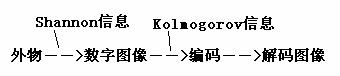 Kolmogorov的复杂性理论[3]应该说是仙农理论的一个很好补充。该理论假设我们不知道信源的性质—概率分布P(X), 只知道信宿—比如一幅数字图像(或一串0-1码)—是什么样子。 把数字图像压缩编码, 无失真编码的最短码长就是图像的复杂性, 也就图像的信息。 用这种观点理解图像信息, DNA遗传信息….似乎比用仙农理论更直观。