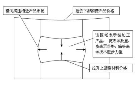 图2 科技进步对上下游产品价格及相近产品市场的影响