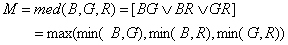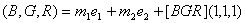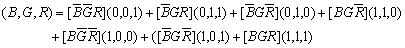 codes R, G, and B and eight output codes of the fuzzy 3-8 decoder (When B>G>R,