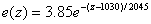 注意上式中等号左边的e(z)是z高度上的水汽压力,它以hPa(百帕)为单位,右边的e 是自然对数的底,等于2.71828。它不是水汽压力,而是数学中经常用到的一个常数。公式中3.85、1030、2045是3个参数。1030的单位是m(米),它表示了水汽压力为3.85 hPa,百帕时的高度,而2045表示了水汽压力向上减少的速率,它的单位是m(米)。如果高度增加了2045m,公式的指数项就等于e-1,于是水汽压力就成为下界点的水汽压力的e-1,即36.7%。